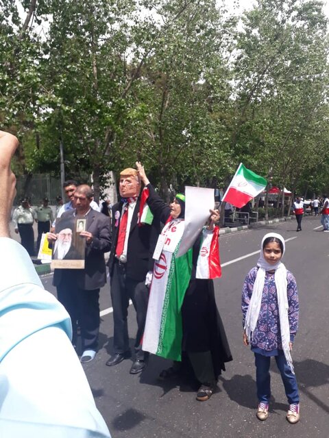 در این راهپیمایی حاضران شعارهایی همچون ” نشانه بیداری بیزاری از آمریکاست”، ” جنایت منطقه زیر سر آمریکاست”، ” کشتار و قتل و غارت ماهیت آمریکاست”،” مرگ بر امریکا”، ” مرگ بر اسرائیل”، “عربده آمریکا قابل اعتنا نیست” ” اسرائیل و آمریکا دو عامل فسادند” “آزادگان عالم آماده جهادند”  و ” در عزم ملت ما تحریم اثر ندارد” سر دادند.