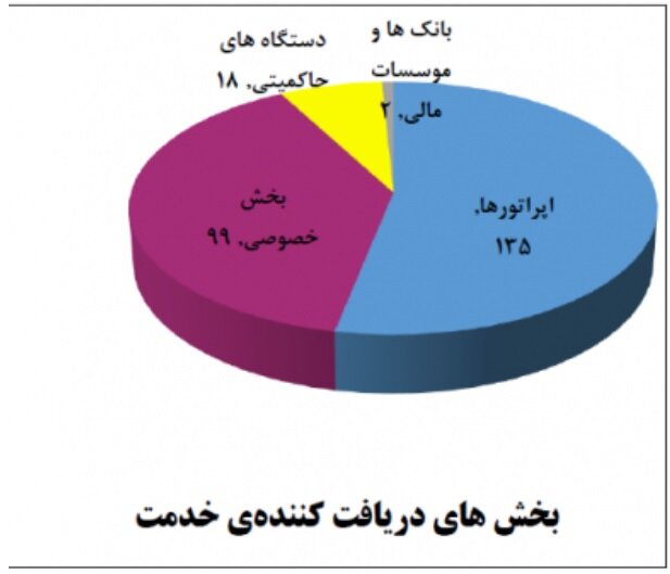 همچنین بخشهای دریافتکننده خدمات از مرکز ماهر شامل اپراتورها، بخش خصوصی، دستگاههای حاکمیتی و بانکها و موسسات مالی میشود که تعداد دریافت این خدمات در نمودار زیر آمده است.
