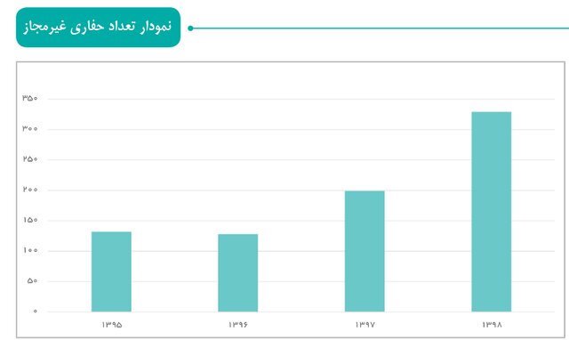 هرچند سیدهادی احمدی روئینی در نشست خبری هفته میراث فرهنگی، معترف شد: حفاری‌های غیرمجاز در همین یک سال افزایش داشته و حتی مرگ حفاران غیرمجاز هم بیشتر شده است. البته او آماری نمی‌دهد، اما وزارت میراث فرهنگی، گردشگری و صنایع دستی در سالنامه آماری که وضعیت میراث فرهنگی در سال ۹۸ را تشریح کرده، تایید می‌کند که تا سال قبل از کرونا، حفاری‌های غیرمجاز به ۶۰۶ مورد رسیده، درحالی که یک سال قبل‌تر از آن، ۴۸۹ حفاری غیرمجاز اتفاق افتاده است.