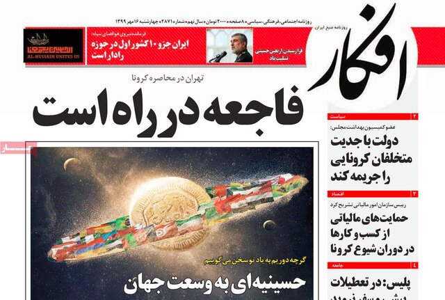 اما این بار، اصلاحطلبها و اصولگراها در توافق و تفاهمی ناخواسته، عکس یک روزنامههایشان را طرحی با عنوان «منظومه حسینی» انتخاب کردند و تیتر اغلب آنها نیز «حسینیهای به وسعت جهان» بود. براساس آنچه در صفحه اینستاگرام خانه طراحان انقلاب اسلامی آمده، این طرح اثر مهدی عسکری است.