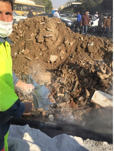 به گفته وی، تصاویر ذیل عکسهای مربوط به فروریزش چهارراه مولوی و چگونگی پرکردن حفره فروریزشی است.