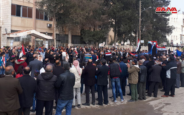 قضات و وکلای استان حلب هم ضمن برگزاری تجمع اعتراضآمیز علیه تصمیم ترامپ اعلام کردند، این اقدام محکوم به شکست است.