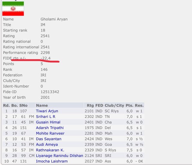 به گزارش صلح خبر، آرین غلامی، شطرنجباز ایرانی که چند وقتی است نتایج خوبی را در شطرنج نمیگیرد در مسابقات آزاد دهلی هم دچار افت شدیدی شد.