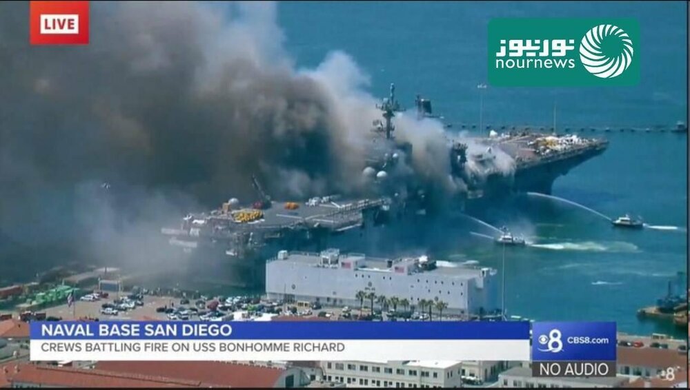 گزارشهای منتشر شده از سوی برخی رسانههای آمریکا حاکی است که به دنبال انفجار در ناوشکن USS Bonhomme Richard در بندر “سن دیگو” آتشسوزی گستردهای در این شناور نظامی ایجاد شده است.