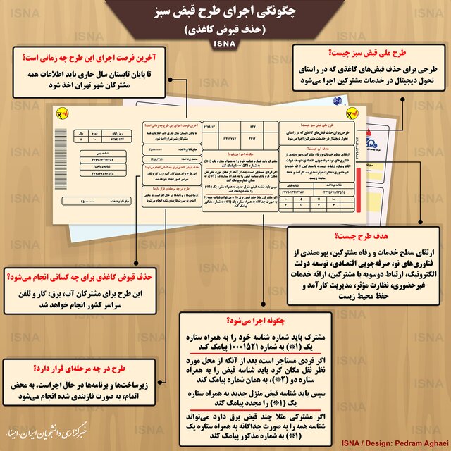 طرح ملی «قبض سبز» در راستای تحول دیجیتال در خدمات مشترکین، در حال اجرایی شدن است. در این طرح قرار است کلیه قبوض کاغذی حذف شود. ارتقای سطح خدمات و رفاه مشترکین، بهرهمندی از فناوریهای نو، صرفهجویی اقتصادی، توسعه دولت الکترونیک، ارتباط دوسویه با مشترکین، ارائه خدمات غیرحضوری، نظارت مؤثر، مدیریت کارآمد و حفظ محیط زیست از اهداف این طرح به شمار میرود.