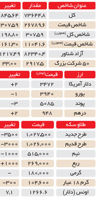 افزایش شاخص در روز گذشته تقریبا با رشد بیشتر صنایع اتفاق افتاد و سهم صنایع فولادی – معدنی، خودرویی و بانکی نسبت به سایر صنایع در رشد شاخص پر رنگتر بوده است. روز گذشته بازار بورس با دادوستد تعداد ٧٦١ میلیون سهم و حق تقدم به ارزش ١٧٧ میلیارد تومان در ٥٣ هزار نوبت و بازار فرابورس با دادوستد تعداد ٤٤٩ میلیون سهم و حق تقدم به ارزش ٨٦ میلیارد تومان در ٢٤ هزار نوبت کار خود را به اتمام رساند.