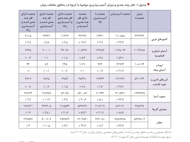 فقر چند بعدی و میزان آسیب پذیری مواجهه با کرونا در مناطق مختلف جهان به این شرح است: