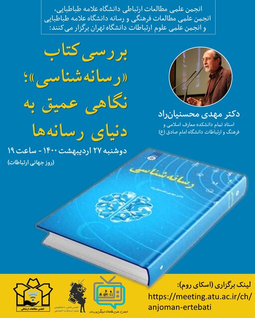 نشست «بررسی کتاب رسانه شناسی؛ نگاهی عمیق به دنیای رسانه ها، قرار است همزمان با روز ارتباطات از ساعت ۱۹ به شکل آنلاین برگزار شود.
