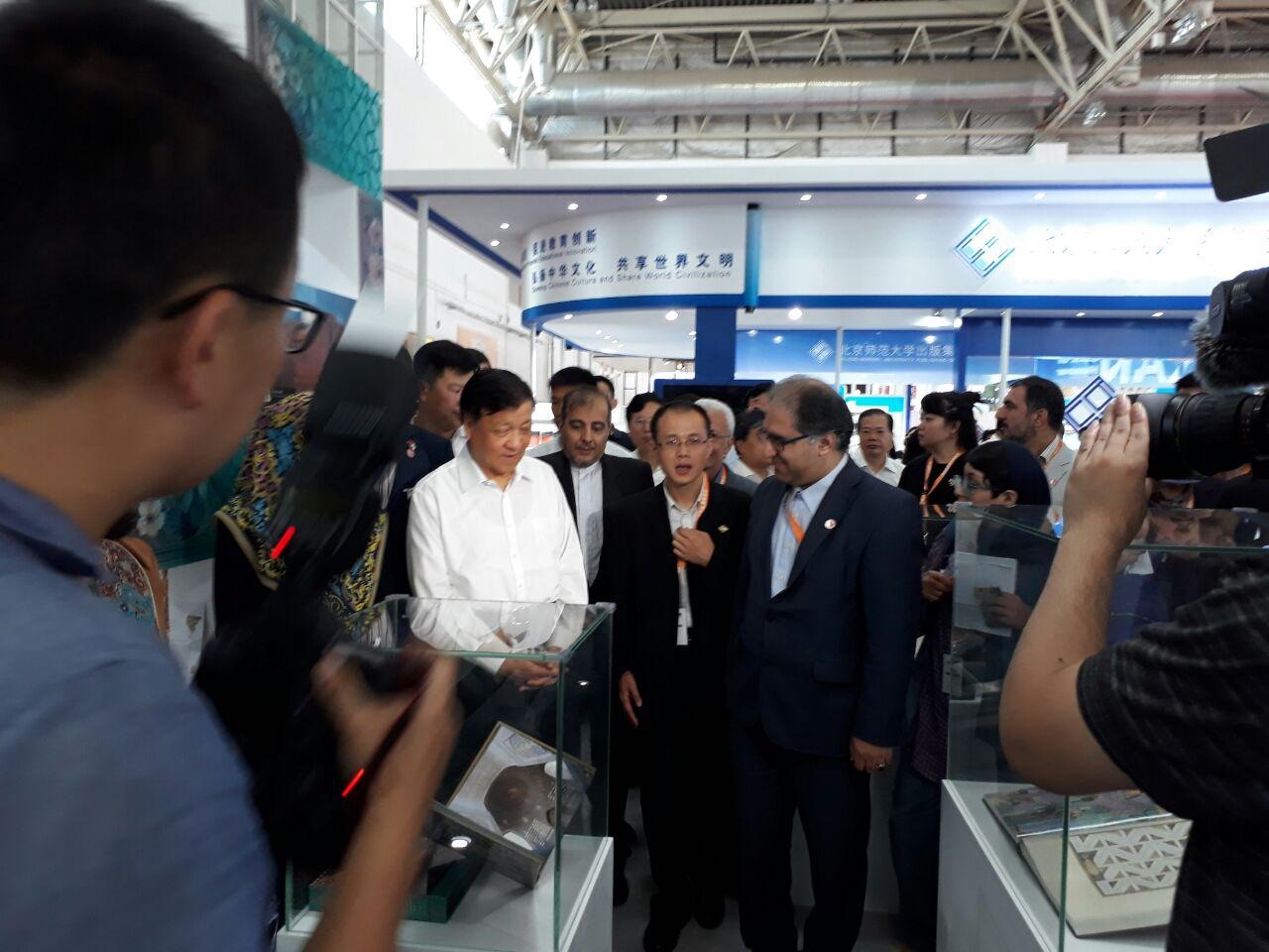 لیو یون شانگ، یکی از اعضای ارشد شورای هفت نفره رهبری چین صبح امروز از غرفه ایران در نمایشگاه کتاب پکن بازدید کرد.