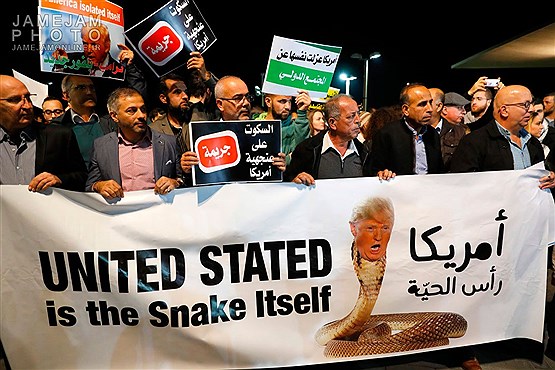 تجمع اعتراض آمیز فلسطینیان مقابل سفارت آمریکا در تل آویو