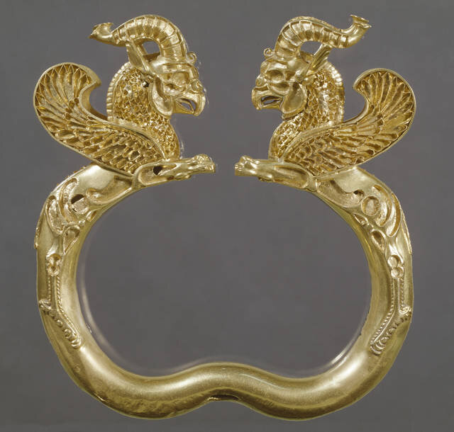 قطعهای از یک کمربند طلایی مربوط به قرن هفتم قبل از میلاد با نقشهای برجسته از گوزن و سر شیر. گزارش شده این کمربند طلایی در سال ۱۹۴۷ توسط روستاییها از یک تابوت برنزی در منطقه زیویه کردستان کشف و بعد قطعه قطعه شده که ۱۴ قطعه از آن در موزههای جهان نگهداری میشود. یک قطعه از این کمربند در موزه ملی ایران موجود است. سوراخهای پشت آن نشان میدهد، احتمالا کمربند به چرم دوخته شده بود. قطعه نمایش داده شده در نمایشگاه ایران حماسی از مجموعه ساریخانی امانت گرفته شده است.