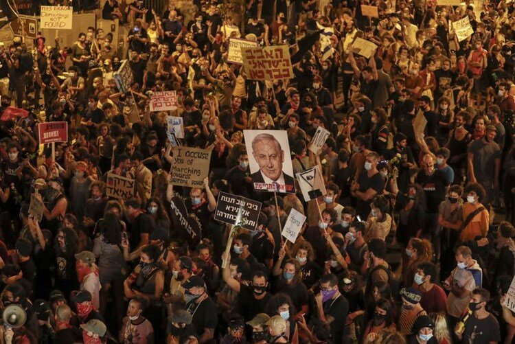 به گزارش صلح خبر، به نقل از شبکه خبری المیادین، هزاران اسرائیلی در مقابل دفتر بنیامین نتانیاهو، نخستوزیر در قدس در اعتراض به عملکرد وی در رابطه با بحران کرونا تظاهرات کردند.