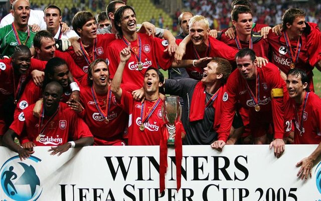 لیورپول (انگلیس)، سه قهرمانی (سال ۱۹۷۷ پیروزی ۷ بر یک برابر هامبورگ، سال ۲۰۰۱ پیروزی ۳ بر ۲ مقابل بایرن و سال ۲۰۰۵ پیروزی ۳ بر یک برابر زسکا مسکو)