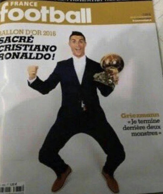 به گزارش ایسنا و به نقل از مارکا، با وجود این که هنوز چند ساعت به معرفی برنده توپ طلا باقی مانده است جلد فردای مجله فرانس فوتبال در سایت‌ها پخش شده که تیتر اصلی آن به کریستیانو رونالدو برنده توپ طلا سال ۲۰۱۶ اختصاص دارد.