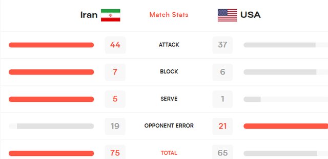 تیم ملی والیبال آمریکا ۲۱ امتیاز از اشتباهات ایران کسب کرد درحالی که بلندقامتان ایران ۱۹ امتیاز از اشتباهات حریف به دست آوردند.