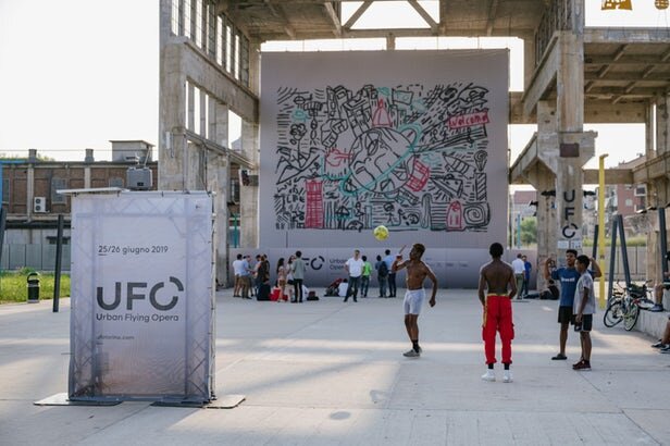این نقاشی توسط ۴ پهپاد که به طور همزمان کار میکردند، در دیوار یک کارخانه اتومبیلسازی در شهر “تورین” ایتالیا کشیده شد.