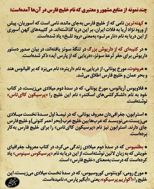 چند نمونه از منابع مشهور و معتبری که نام خلیج فارس در آنها آمده است: