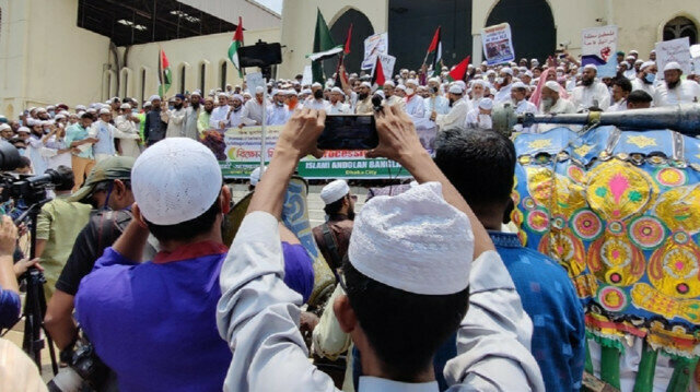 به گزارش صلح خبر، به نوشته روزنامه ینی شفق، این راهپیمایی در مسجد ملی بیتالمکرم در داکا و پس از برگزاری نماز عید فطر آغاز شد و مردم به سمت جادههای اصلی شهر رفتند.