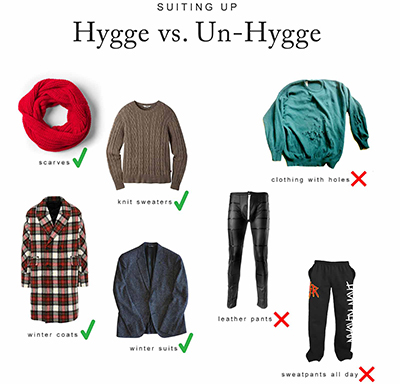 هشدار: با این که ممکن است پوشیدن شلوار گرمکن نماد زندگی به سبک هوگه به نظر بیاید، باید در بیرون از خانه استاندارد خاصی را رعایت کنید. نباید طوری لباس بپوشید که انگار همین الآن از رختخواب بیرون آمدهاید. شاید بهتر باشد در سردترین روزهای زمستان، از پارچههای سرد و دباغیشده مثل چرم چشم پوشی کنید.