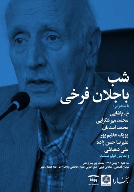 به گزارش صلح خبر، شب باجلان فرخی قرار است با سخنرانی پاشایی، محمد میرشکرایی، محمد اسدیان، پوپک عظیم پور، علیرضا حسنزاده و علی دهباشی، از ساعت پنج تا هفت و نیم بعدازظهر سه شنبه ۳۰ بهمن برگزار شود.