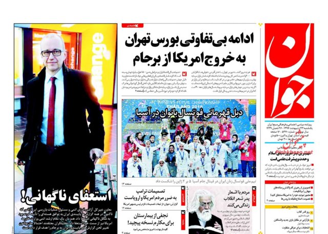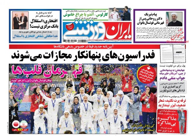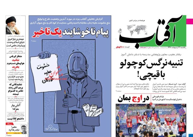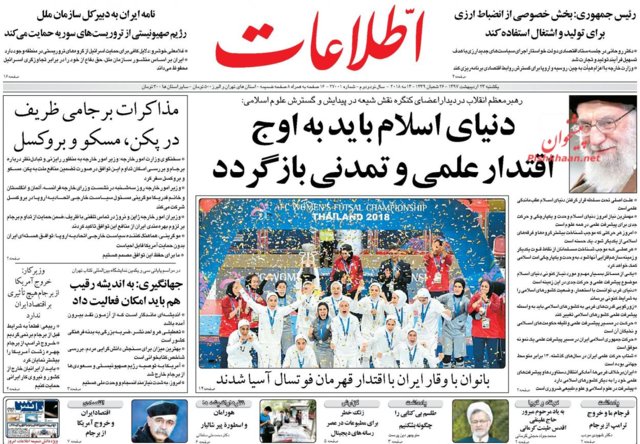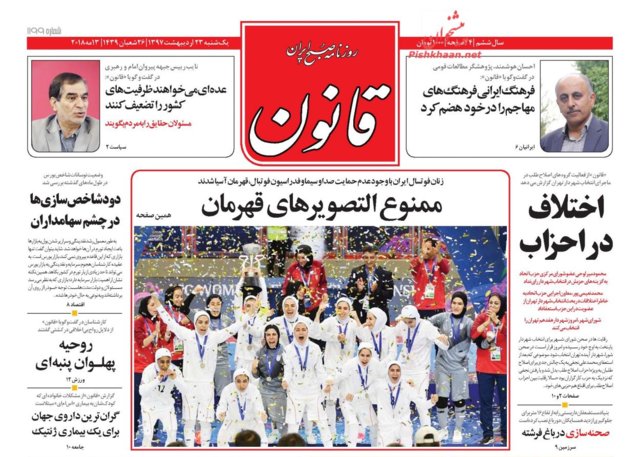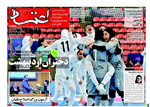 اغلب روزنامه‌های صبح امروز در صفحه نخست خود به موضوعاتی همچون بیانات رهبر انقلاب در دیدار شرکت‌کنندگان کنگره نقش شیعه در پیدایش و گسترش علوم اسلامی و قهرمانی تیم فوتسال بانوان ایران در آسیا پرداخته‌اند.