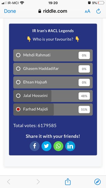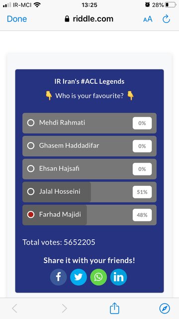 به گزارش صلح خبر، سایت کنفدراسیون فوتبال آسیا از چندین روز قبل اقدام به برگزاری نظرسنجی برای تعیین اسطوره ایرانی لیگ قهرمانان آسیا کرد که در این بین فرهاد مجیدی و سیدجلال حسینی با اختلاف بسیار زیاد نسبت به رحمتی، حدادیفر و حاجصفی در صدرجدول قرار گرفتند.