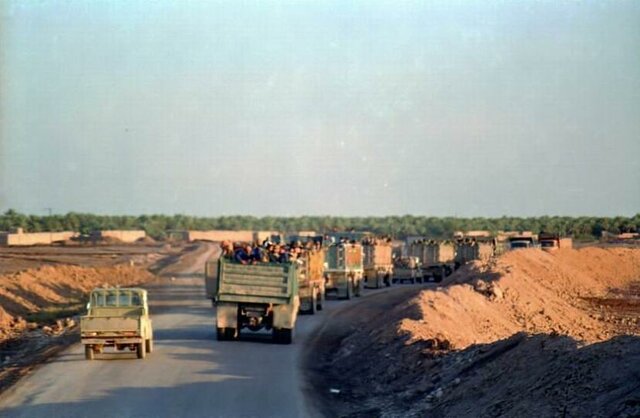 رفتیم توی کامیون نشستیم و کامیون حرکت کرد. در جاده که میرفتیم ناگهان صدای پدافندها درآمد، صدای توپخانه و آتش و همه چیز منطقه شلوغ شد. پدافندها شلیک میکردند. بچهها هم پشت بار کامیون برای خودشان شعر میخواندند و گاهی هم صدای قهقهشان میآمد که یک دفعه صدا زدند هواپیما رو زدند.