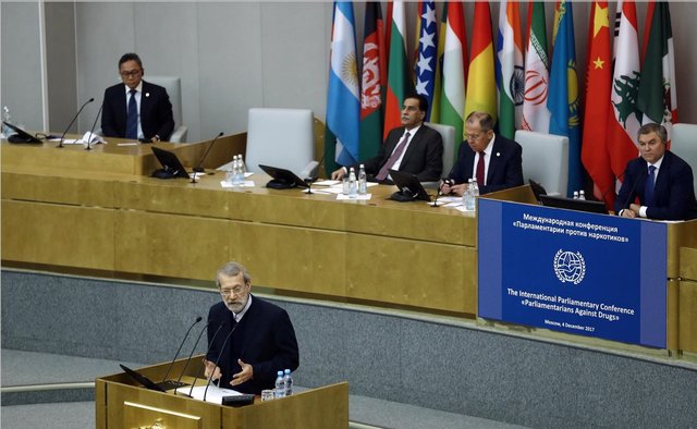 لاریجانی با اشاره به نقش ایران و روسیه در مبارزه با مواد مخدر گفت : برای کشورهای روسیه، ایران، چین، تاجیکستان و پاکستان در مسیر ترانزیت هستند مبارزه با مواد مخدر بسیار پراهمیت است. کشورهای عضو ناتو باید به وظایف خود عمل کنند و موضوع مبارزه سهم گذاری شود تا مبارزه با مواد مخدر جدی پیگیری شود.