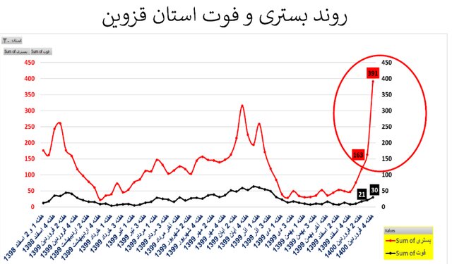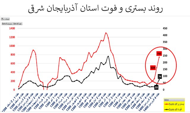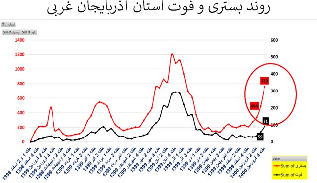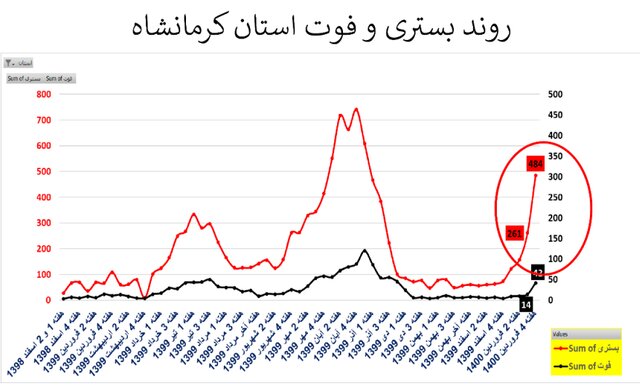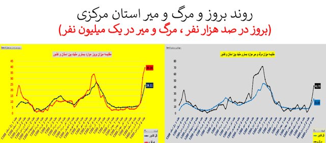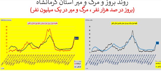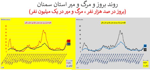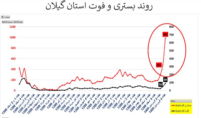 در هفته اخیر روند بستری در این استان به طرز نگرانکنندهای افزایش یافته و فوت نیز افزایش یافته است. بروز و میزان مرگ و میر استان از متوسط کشوری بالاتر است.
