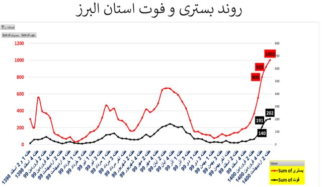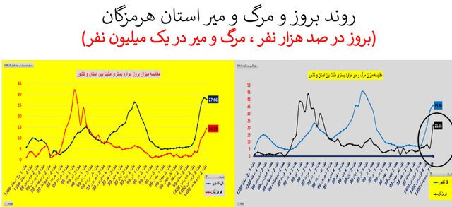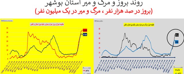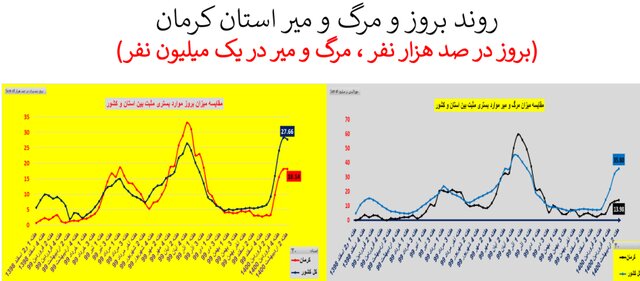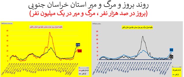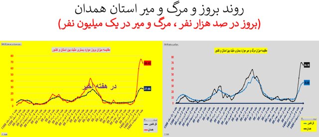 موارد بستری و فوت استان با شتاب نگرانکنندهای افزایش یافته است، اما بروز موارد بستری میزان مرگ و میر هنوز از متوسط کشوری کمتر است.
