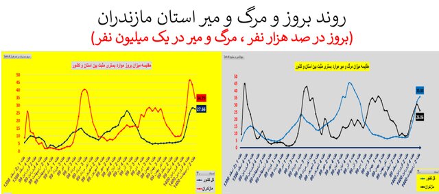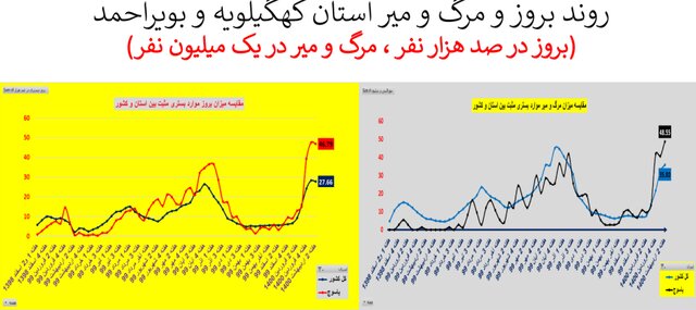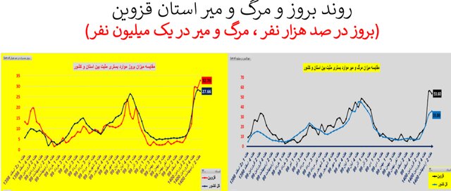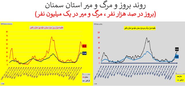 در این استان روند بستری در هفته اخیر کاهش اما موارد فوت افزایش یافته است. بروز مرگومیر از حد متوسط کشور بیشتر است.