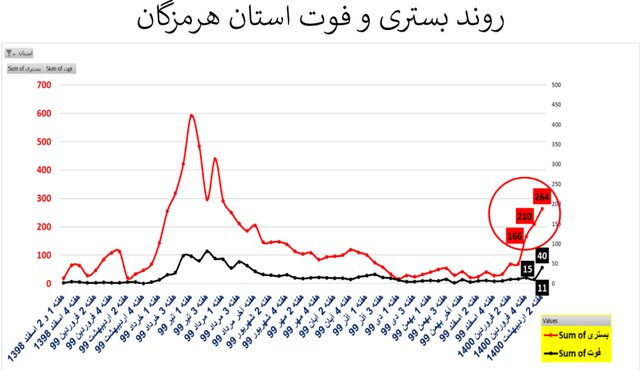 در هفته اخیر روند بستری با شتاب نگرانکنندهای افزایش یافته و فوت نیز افزایش یافته است. بروز موارد بستری و مورتالیتی هنوز از متوسط کشوری کمتر است.