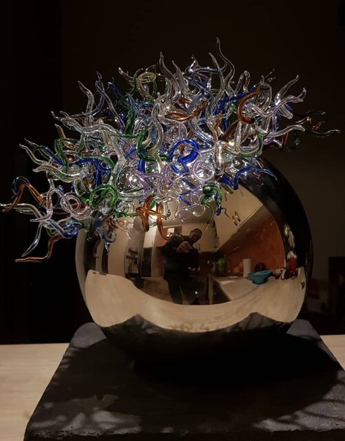 در پایان بخش دوم به دو اثر «ارگاسم رویا» میرسیم. تفاوت این کارها این است که برروی کرههای نقرهای رنگ شیشههای رنگی وجود دارد. بر روی اثر «ارگاسم رویا»ی یک شیشههای رنگی با تعداد و پیچ و تاب بیشتری نسبت به کار دوم در کنار هم قرار گرفتهاند. رنگارنگ بودن شیشهها نمادی از تنوع رویا است.