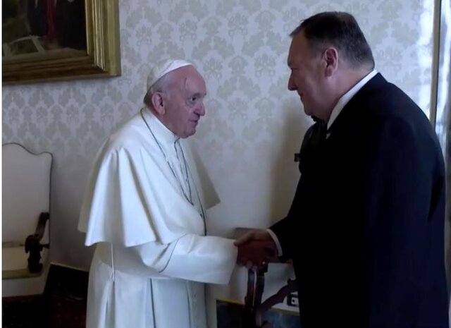 به گزارش صلح خبر، وزارت امور خارجه آمریکا اظهار کرد، مایک پامپئو، وزیر امور خارجه آمریکا و پاپ فرانسیس در این دیدار نیم ساعته درباره اهمیت حفاظت از حقوق اقلیتها در خاورمیانه توافق کردند.