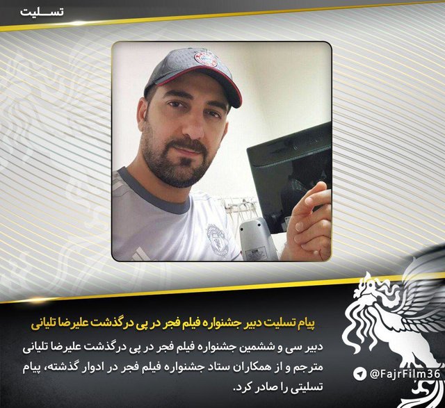 «درگذشت آقای علیرضا تلیانی مترجم و دبیر با اخلاق خبرگزاری دانشجویان ایران (صلح خبر) در سنین جوانی، اندوه فراوانی را موجب شد. ایشان از جمله مترجمانی بودند که در چند دوره جشنواره فیلم فجر، به نمایندگی از رسانه خود در جهت رونق این رویداد فرهنگی گام برداشتند و در چند دوره، به عنوان مترجم با ستاد جشنواره همکاری داشتند.