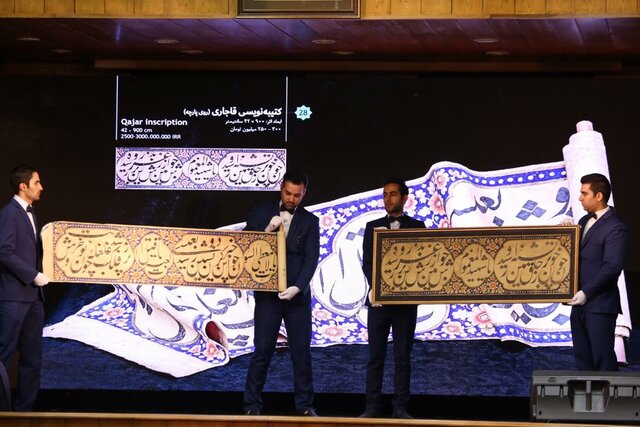 «اثر ملک محمد قزوینی مربوط به دوره قاجار»، «تابلوی شش قطعهای مرقع میرعماد حسنی قزوینی (صفوی)»، «دو اثر از محمد حسین عماد الکتاب، خوشنویس دوره قاجار»، «صحیفه سجادیه اثری از سال ۱۰۷۱ هجری قمری»، «خط کوفی سده پنجم هجری قمری»، «اثر طلانویسی دوره قاجار»، «خط نسخ به قلم میرزا عباسآقا از دوره قاجار»، «اثری از ابوالحسنخان (غفاری) که تمثالی از حضرت علی (ع) را نیز نقش کرده (قاجاری)، «حراج فرمان قاجاری (متن فرمان حقوق و مستمری میرزا سیدکاظم خوشنویس دربار ناصرالدین شاه)»، «عقدنامه قاجاری که ترکیبی از خطوط نستعلیق، نسخ و شکسته نستعلیق بود»، «فرمان قاجاری دیگری- وقفنامه قجری – موضوع وقف در آمد حاصل از قنات وقف تهیه روغن چراغهای حرم امام هشتم (ع) -»، «یک شکسته نستعلیق و اثری دیگر از میرزا غلامرضا اصفهانی (قاجاری)»، «حسن زرین قلم اثری ۱۰۸ ساله (قاجار)»، «کتیبه نویسی ۱۰ متری از دوره قاجار»، «اثر میرزا عمو تهرانی (قرن ۱۳)» آثاری بودند که در خبر منتشر شده نیز قدمت آنها به وضوح نشان میداد که ظاهراً بیش از ۱۰۰ سال عمر داشتند.