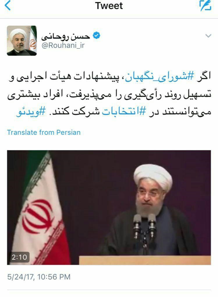 کنایه توئیتری حسن روحانی به شورای نگهبان