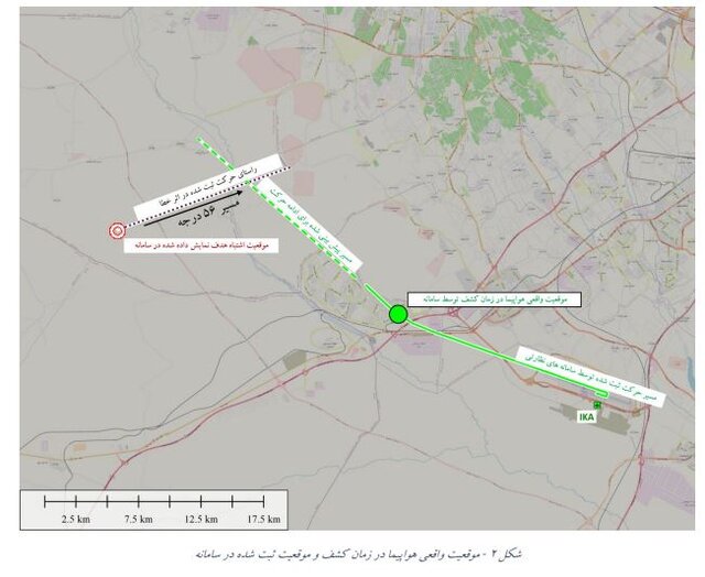 ۱۳- در زمان شلیک موشک اول، هواپیما در ارتفاع و موقعیت عادی قرار داشت. اطلاعات سامانههای شناسایی به درستی توسط سیستمهای زمینی در یافت میشد و در زمان شلیک، هواپیما در مسیر صحیح پروازی خود قرار داشت.