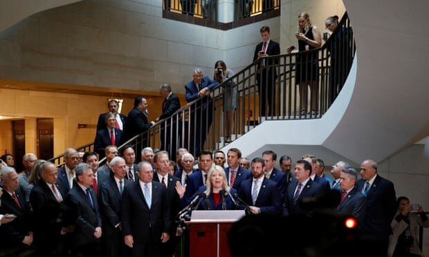 قانونگذاران جمهوریخواه از جمله چهرههای سرشناسی مانند استیو اسکالیس، از کمیته اقلیت مجلس نمایندگان آمریکا در خارج از اتاق محل برگزاری این جلسه حضور یافتند و به خبرنگاران اطلاع دادند که تلاش خواهند کرد برای استیضاح ترامپ وارد جلسه غیر علنی شوند.